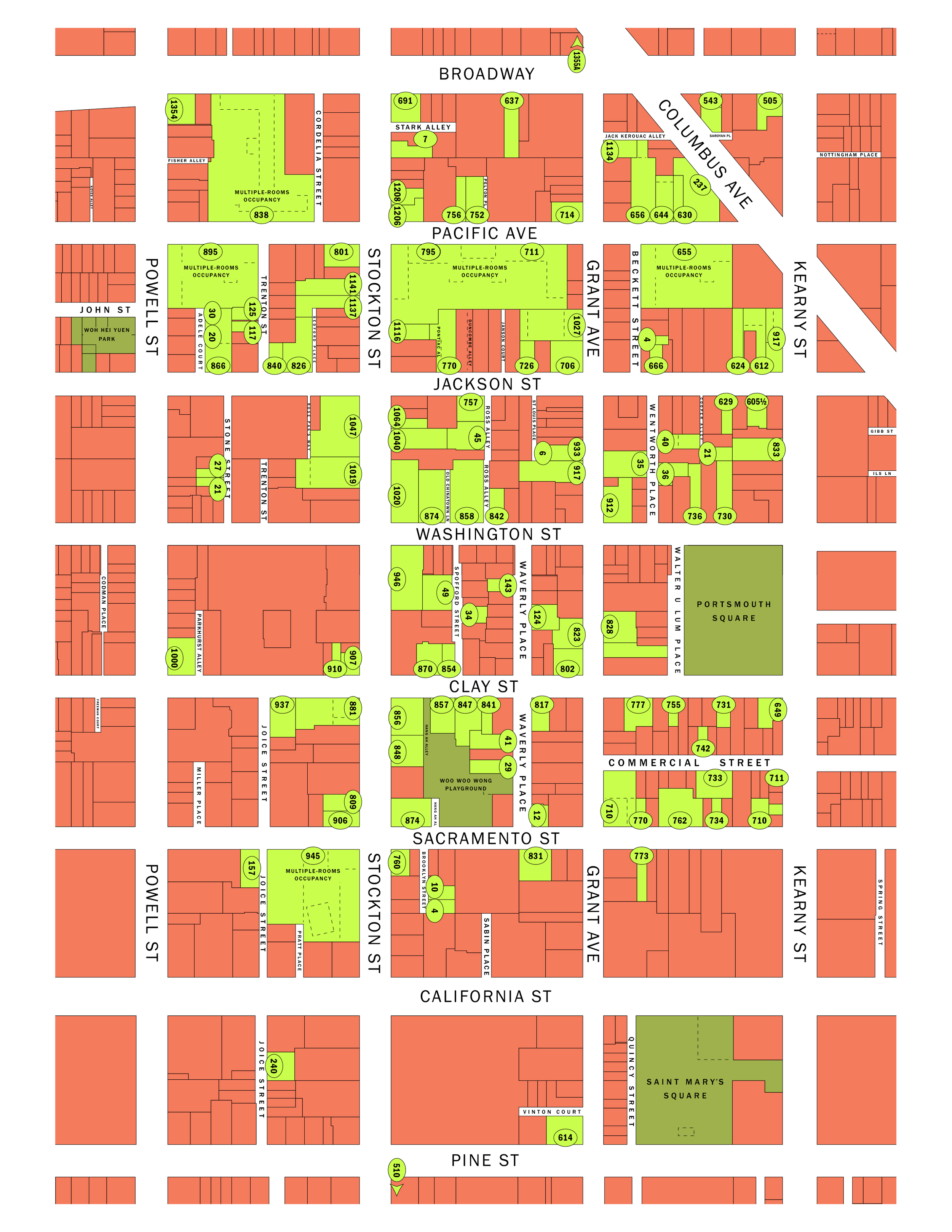 The survey map of the Chinatown neighborhood was designed by John Borruso.